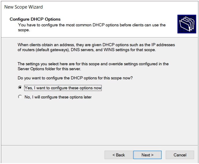 In the Configure DHCP Options window make sure Yes is selected and click Next.
