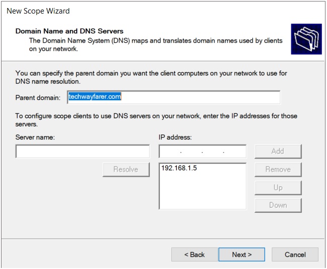 • DNS Suffix – the domain name suffix applied to short hostnames. DHCP announces the DNS suffix. Then a device on the network can be found using the unqualified name (server1) instead of the fully qualified domain name (server1.techwayfarer.com).